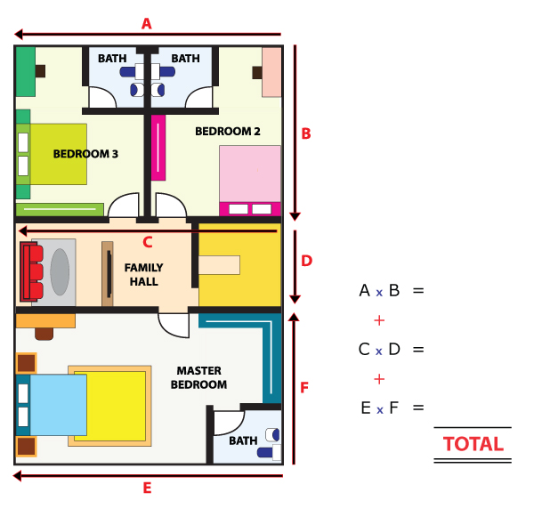 Draw a plan of the outside of your house and calculate the area as per the diagram.